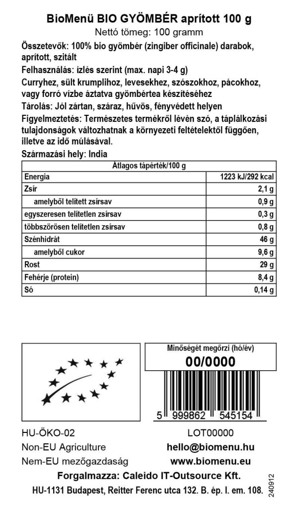 Aby wyprodukować organiczny imbir, cały świeży korzeń imbiru jest krojony wzdłuż, suszony, a następnie krojony na małe, granulowane kawałki. Granulki mają żółto-beżowy kolor i aromatyczny, ostry, cytrusowy, ognisty smak. Po zaparzeniu w wodzie, posiekany i przesiany imbir tworzy aromatyczny napar, który można pić jako herbatę lub dodawać do pikantnych potraw dla dodatkowego smaku.