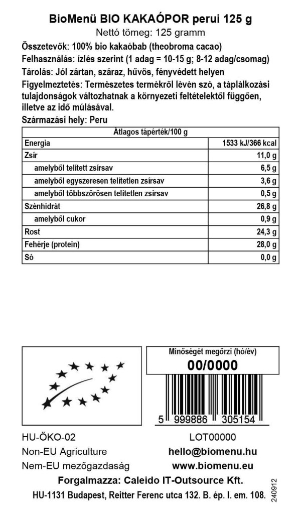 BioMenü ekologiczne proszek kakaowy peruwiański 125 g