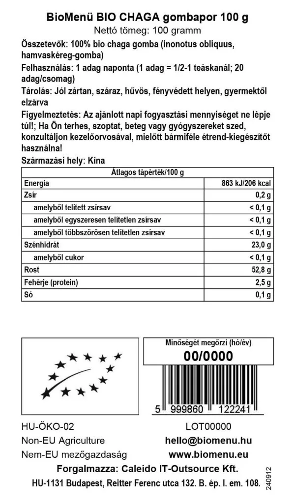 Organiczny proszek z grzyba chaga wytwarzany jest w 100% z kory jesionu (Inonotus obliquus), znanego również jako grzyb chaga. Inonotus obliquus występuje głównie w lasach brzozowych na półkuli północnej.
