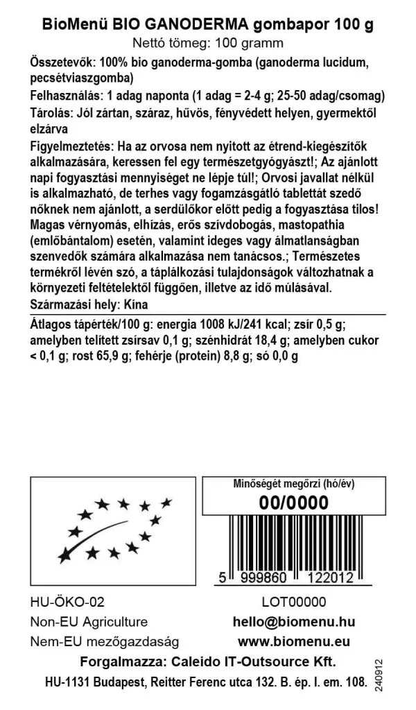 BioMenü ekologiczny proszek z grzybem ganoderma 100 g