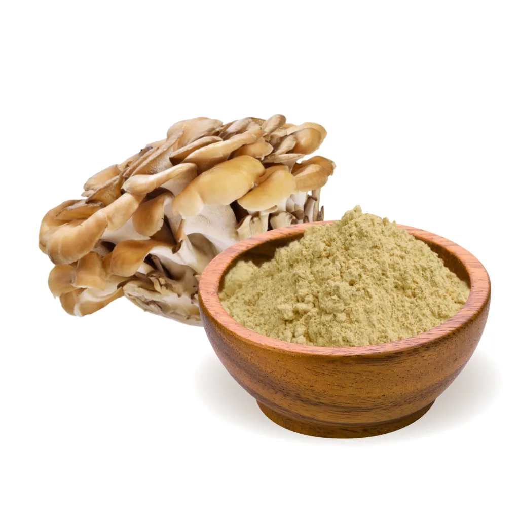 Nasz organiczny proszek maitake to drobny, jasnobrązowy proszek wytwarzany z owocników grzyba maitake, znanego również jako żagwica listkowata (grifola frondosa). Owocniki grzyba, które mogą mieć do 100 cm szerokości, są zbierane, suszone, granulowane, a następnie mielone na drobny proszek. Znany w Japonii jako „Król Grzybów”, grzyb ten rośnie w dużych kępach w pobliżu pni drzew i pni w lasach Azji i jest stosowany w tradycyjnej medycynie azjatyckiej od tysięcy lat.