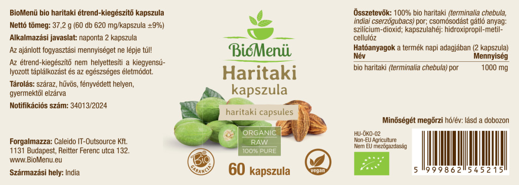 100% organiczny proszek z haritaki (terminalia chebula, garbarnia indyjska); substancja przeciwzbrylająca: dwutlenek krzemu; otoczka kapsułki: hydroksypropylometyloceluloza