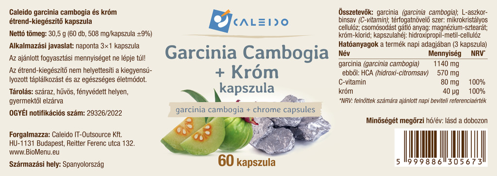 garcinia (garcinia cambogia); kwas L-askorbinowy (witamina C); substancja wypełniająca: celuloza mikrokrystaliczna; substancja przeciwzbrylająca: stearynian magnezu; chlorek chromu; otoczka kapsułki: hydroksypropylometyloceluloza