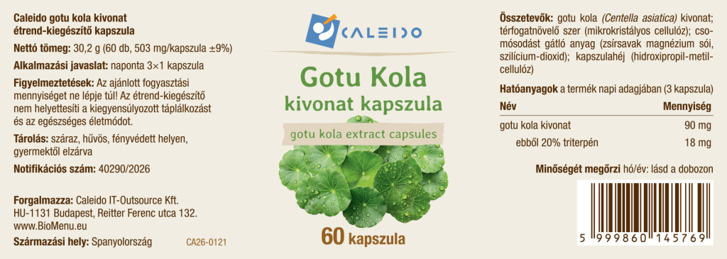 Kapsułki z ekstraktem z gotu kola Caleido to roślinny suplement diety zawierający ekstrakt z gotu kola (Centella asiatica). Roślina ta jest znana w tradycyjnym stosowaniu od wieków i nadal jest popularnym składnikiem świadomie opracowanych suplementów diety.