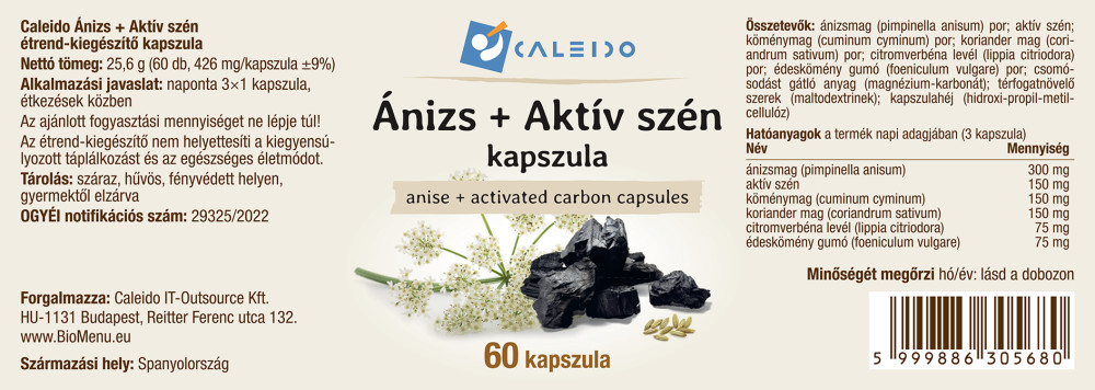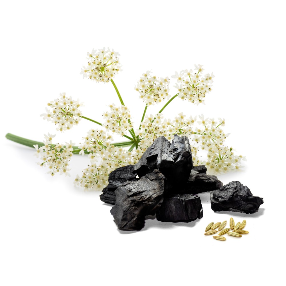 proszek z nasion anyżu (Pimpinella anisum); węgiel aktywowany; proszek z nasion kminu rzymskiego (Cuminum cyminum); proszek z nasion kolendry (Coriandrum sativum); proszek z liści werbeny cytrynowej (Lippia citriodora); proszek z bulw kopru włoskiego (Foeniculum vulgare); substancja przeciwzbrylająca (węglan magnezu); substancje wypełniające (maltodekstryny); otoczka kapsułki (hydroksypropylometyloceluloza)
