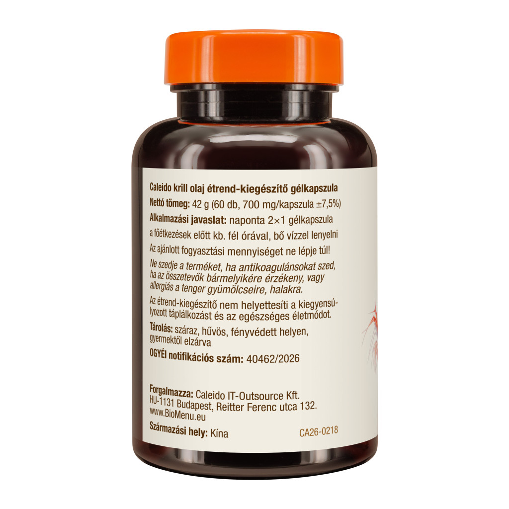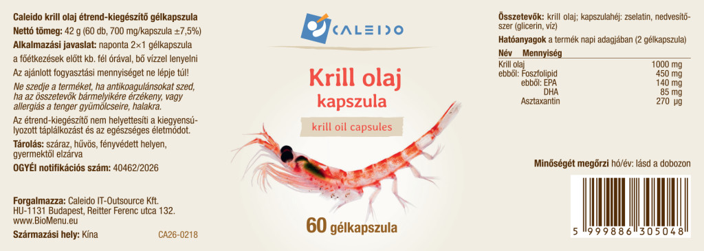 Olej z kryla 1000 mg, w tym fosfolipidy 450 mg, w tym EPA 140 mg, DHA 85 mg, astaksantyna 270 µg