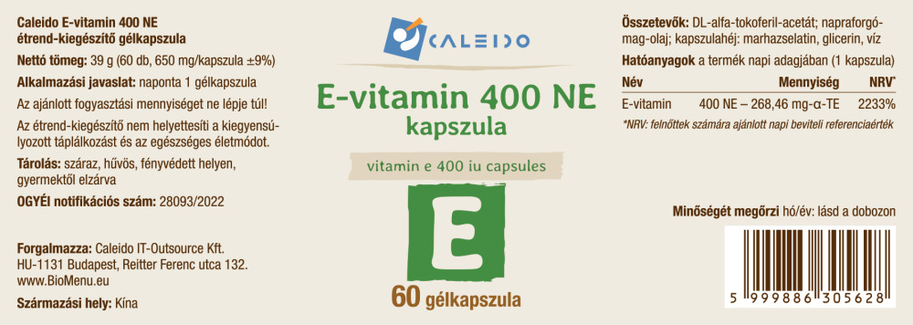 Witamina E 400 IU – 268,46 mg-α-TE (NRV 2233%)