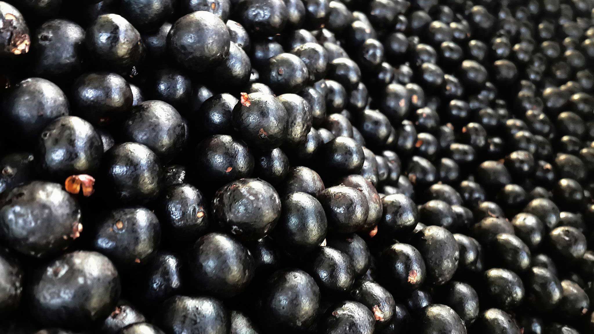 Jagody acai to owoce palmy acai rosnącej w amazońskim lesie deszczowym, które przed spożyciem rozgniata się